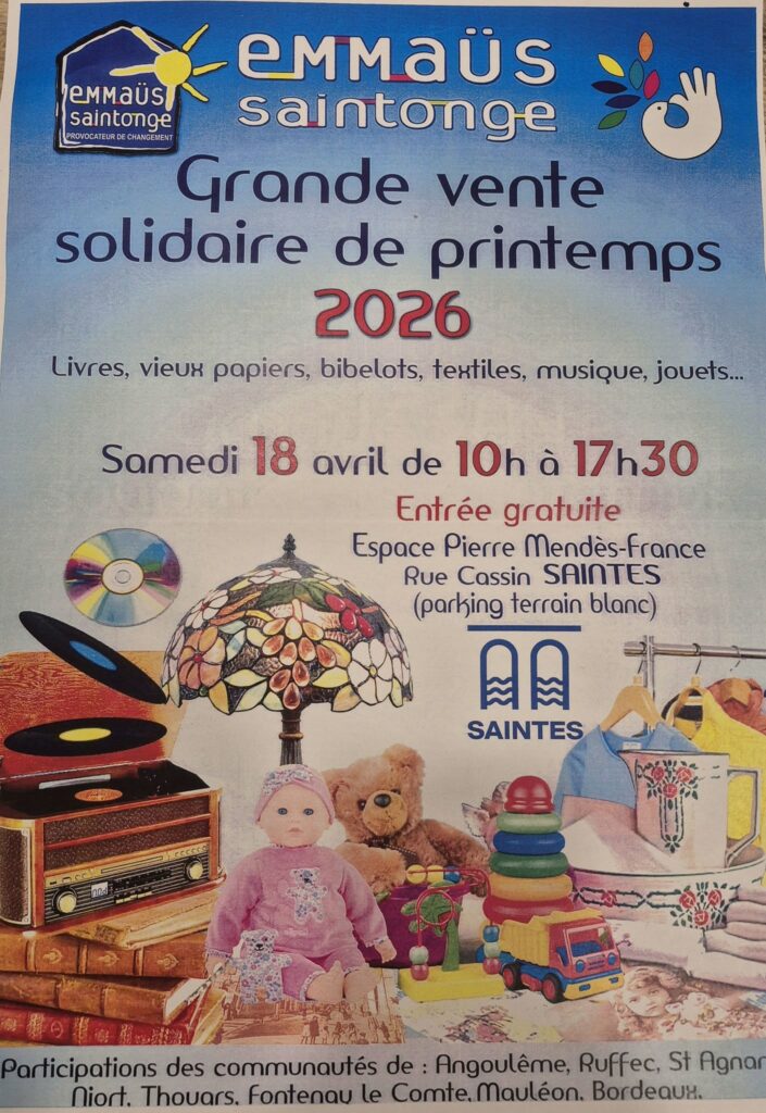 Samedi 18 avril de 10h à 17h30 à Saintes