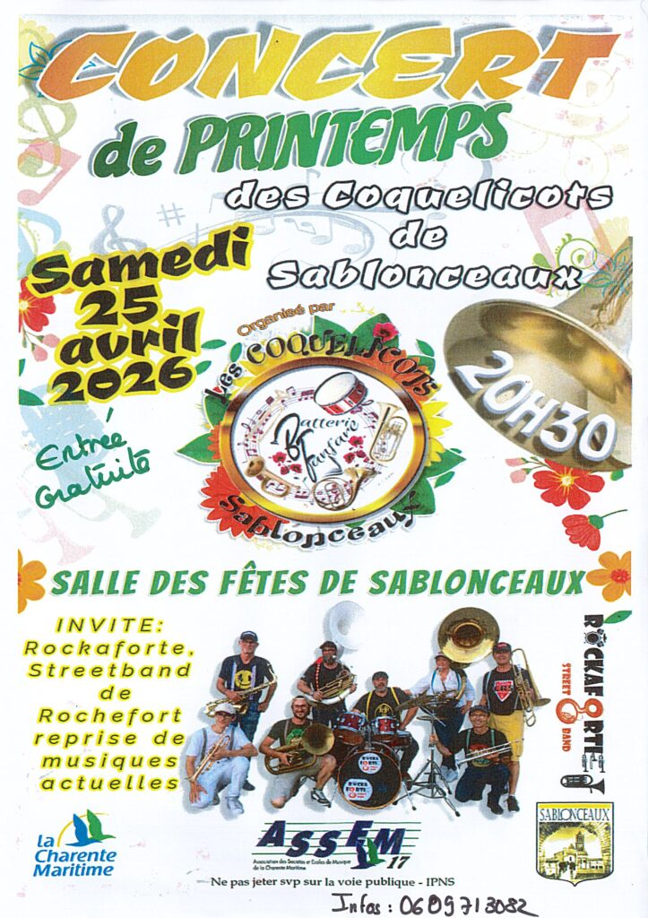 Samedi 25 avril à 20h30 à Sablonceaux