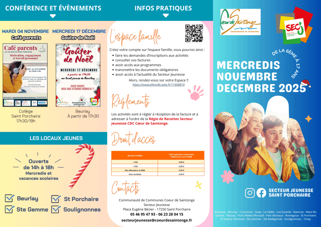 - Courriel : secteurjeunesse@coeurdesaintonge.fr